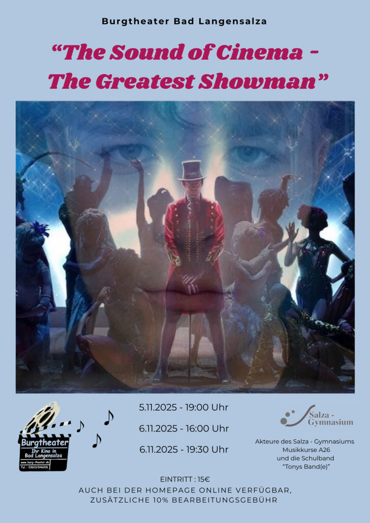| Mi.., 05.11.2025 19:00 - 20:30 | Musikprojekt „The Sound of Cinema“ im Burgtheater Bad Langensalza | |