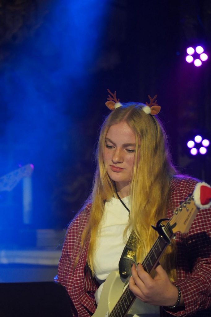 Aber diese drei waren nicht die einzigen, die aus der Lehrerschaft aktiv am Geschehen beteiligt waren: Die bereits von einiger Zeit gegründete Lehrerband um Frontsängerin Frau Janetschke heizte dem Publikum ordentlich ein. Gleich mehrere Songs hatten die vier Musikliebhaber einstudiert. Gesanglich überzeugte auch wieder die Schulband um Mariella Steinbrück und Lennox Tröger. Beide sangen sich in die Herzen der Anwesenden und ließen keine Zweifel daran aufkommen, dass diese Schulband weit mehr ist als nur eine Freizeitbeschäftigung.