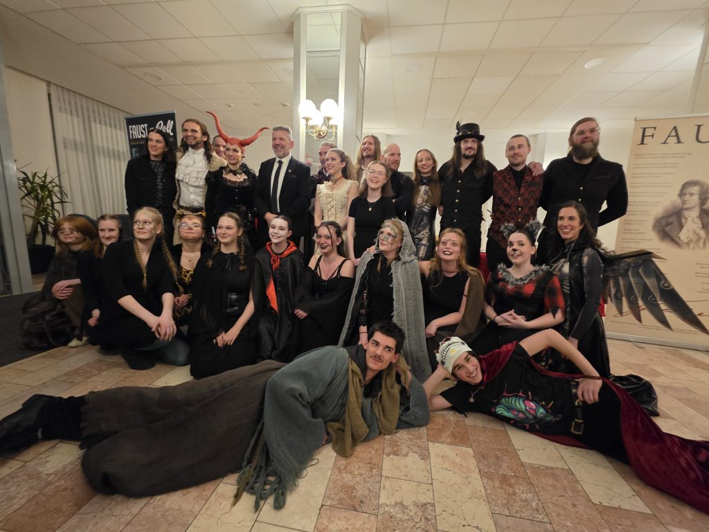 Recht hat er! Und nicht nur dieses Zitat aus Goethes wohl bekanntestem Werk, an welchem er 69 Jahre seines Lebens schrieb, ist im kulturellen Gedächtnis der Deutschen tief verankert. So bewies es auch Landrat Ahke, der Schirmherr des Rocktheaters “Faust ‘n Roll”, der textsicher den Osterspaziergang vor dem staunenden Publikum zum Besten gab. Von dieser Rezitation bekamen die Schülerinnen und Schüler des Darstellen- und-Gestalten-Kurses der Klassenstufe 11 jedoch nicht viel mit. Sie bereiteten sich hinter der Bühne auf ihren großen Auftritt vor.