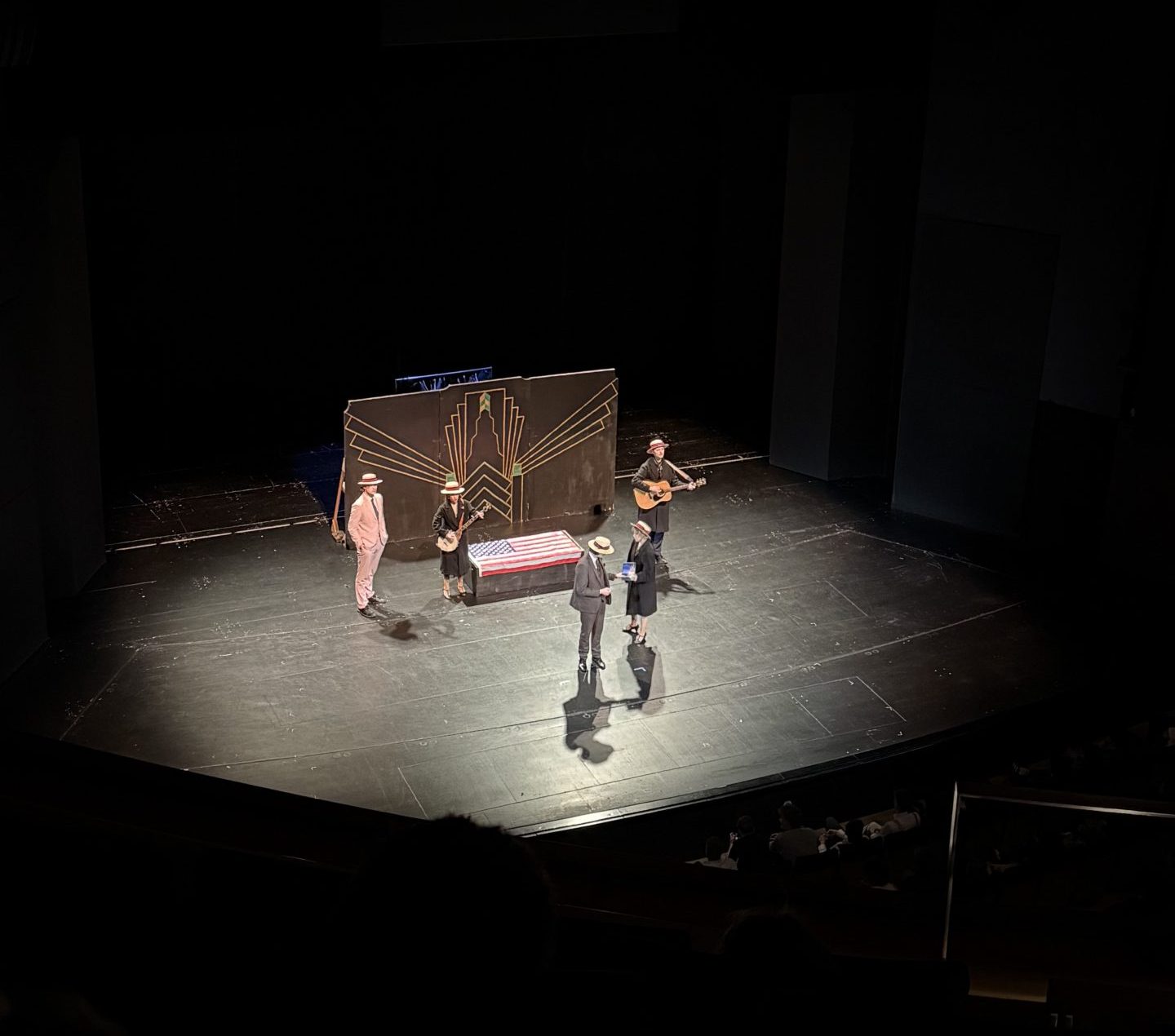 Das doch sehr ernste Buch wurde überaus schülerfreundlich mit Musikbegleitung und Gesangseinlagen sowie herausragenden, kreativen Ideen umgesetzt. Das fast ausverkaufte Haus wurde nicht nur einmal zum Schmunzeln gebracht, lachen war definitiv erlaubt! Es war dadurch möglich für etwa anderthalb Stunden in die „Roaring Twenties“ der USA einzutauchen und somit eines der Rahmenthemen des Abiturs auf eine ganz andere Art und Weise zu vertiefen.